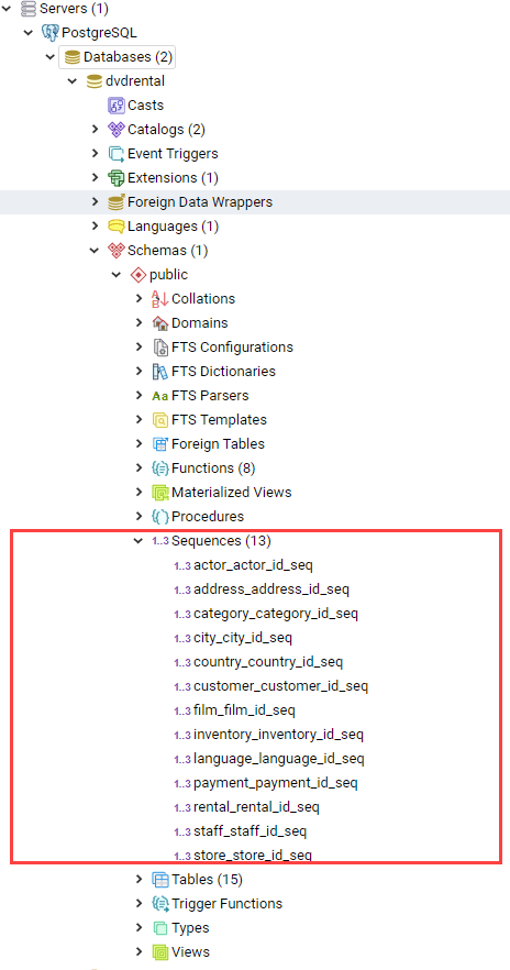 In this tutorial, you have learned the common PostgreSQL database and server objects. Just take a few minutes to explore these objects to get a brief overview of them before starting the next tutorial.